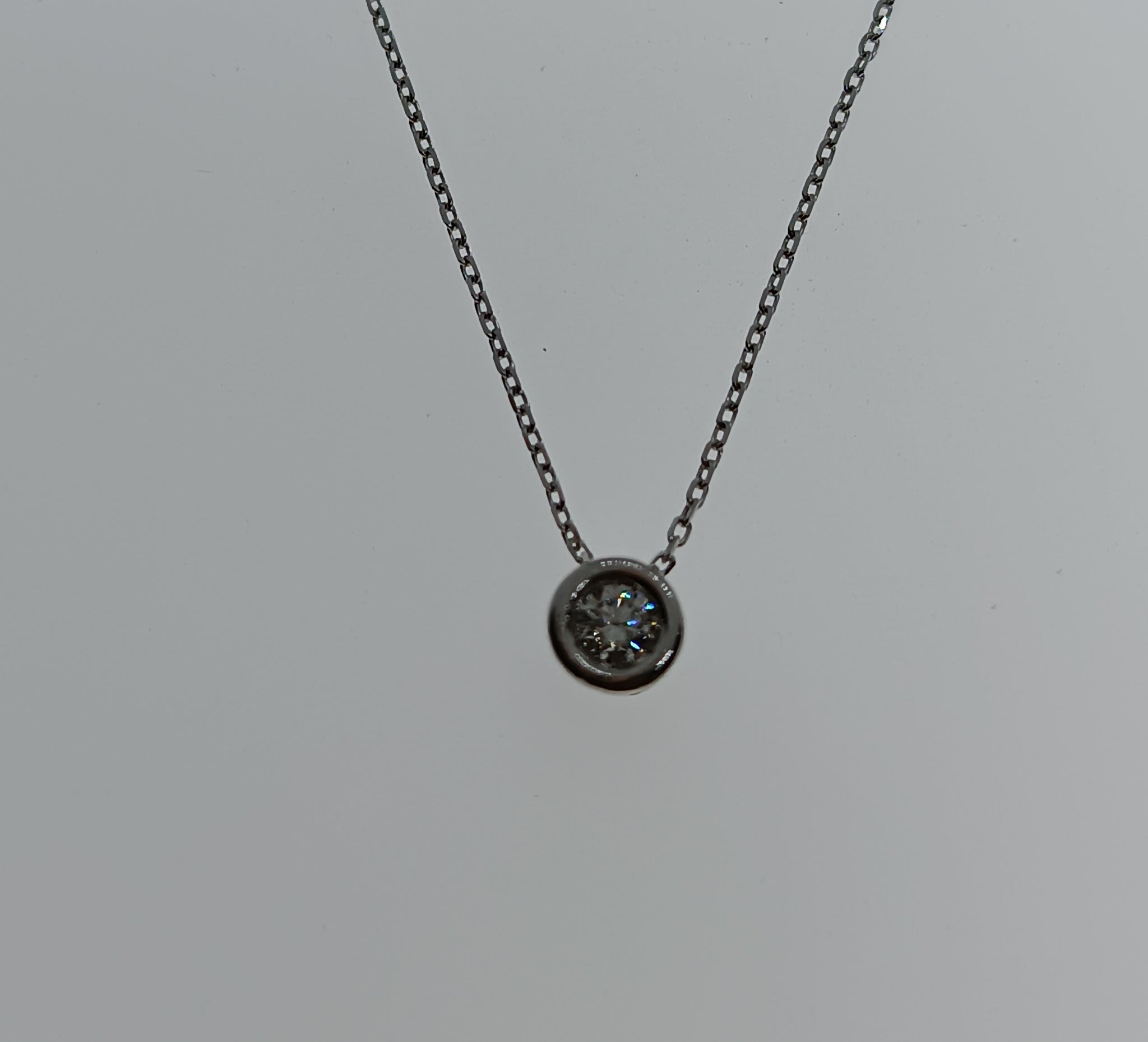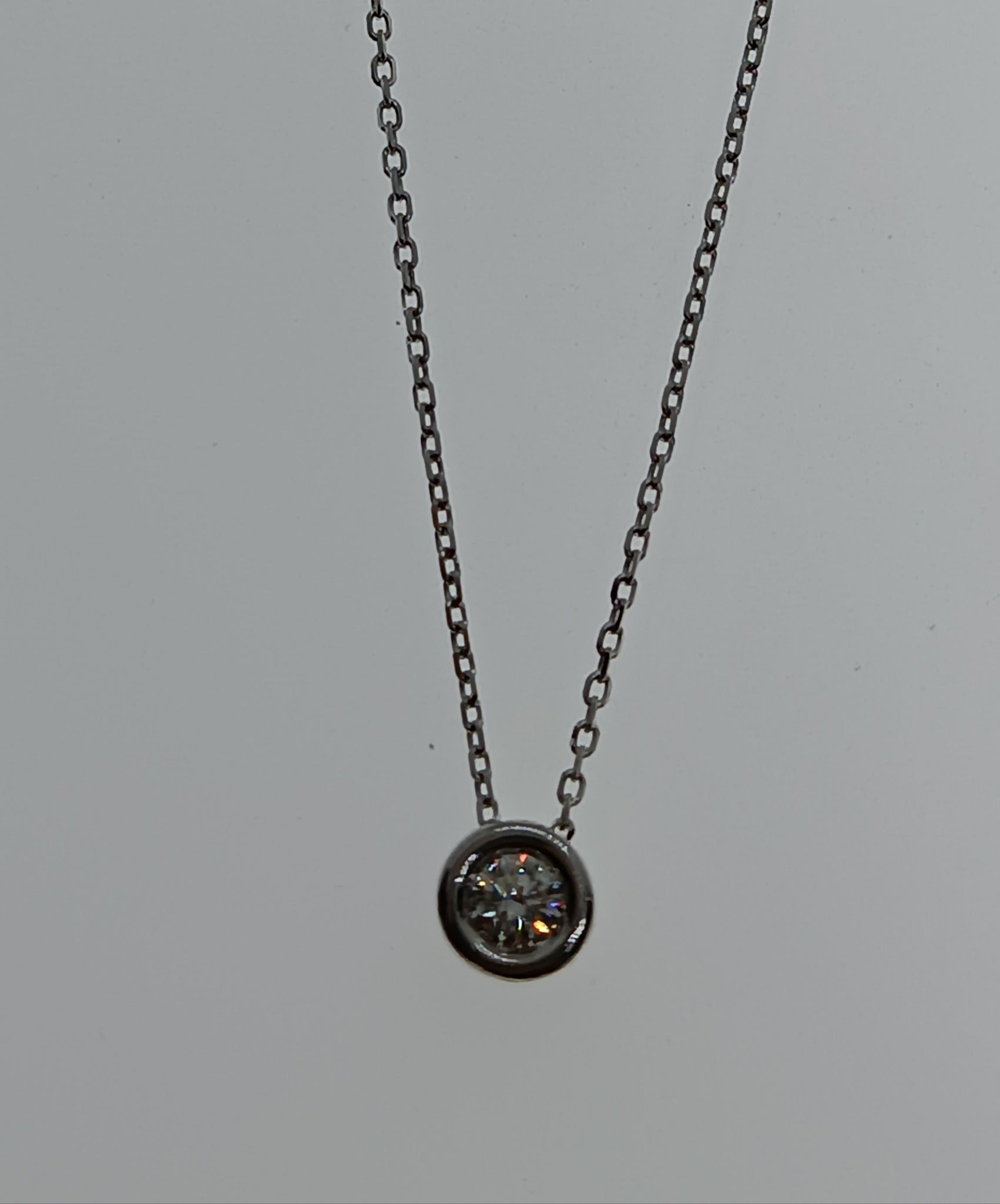 • 📝 DESCRIPCIÓN: Gargantilla Oro Blanco de 18 ktes con Diamante Natural engastado en chatón, color H, pureza SI Y 0,26 CT.  Una joya esencial, discreta y sofisticada.